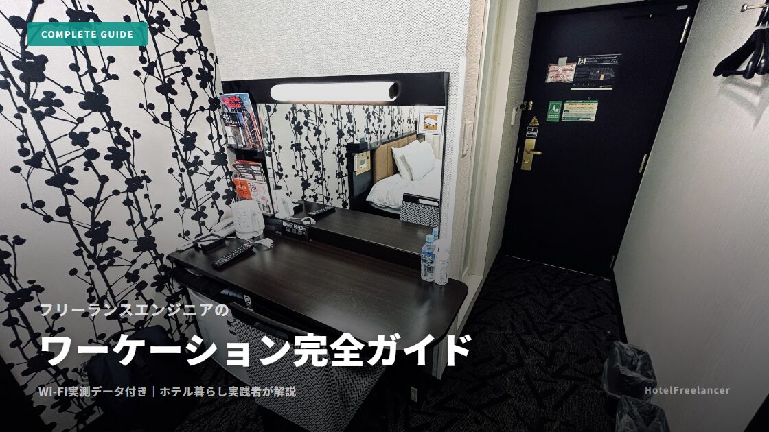 フリーランスエンジニアのホテル暮らし・ワーケーションについて、始め方からコスト・ホテル選び・食事の工夫まで一通り解説した。
